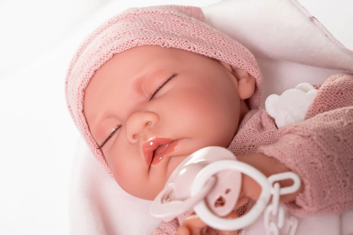 Meet Luna, the tender and peaceful newborn baby doll from Antonio Juan. With her serene expression, soft pompom hat, and cozy blanket, Luna is always ready for a restful nap—or for becoming a child’s first loving playmate.