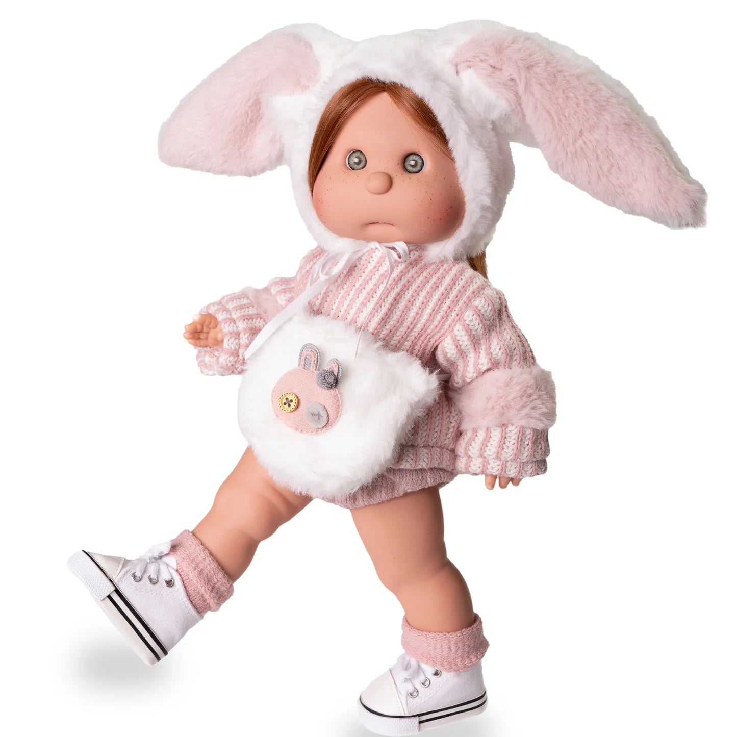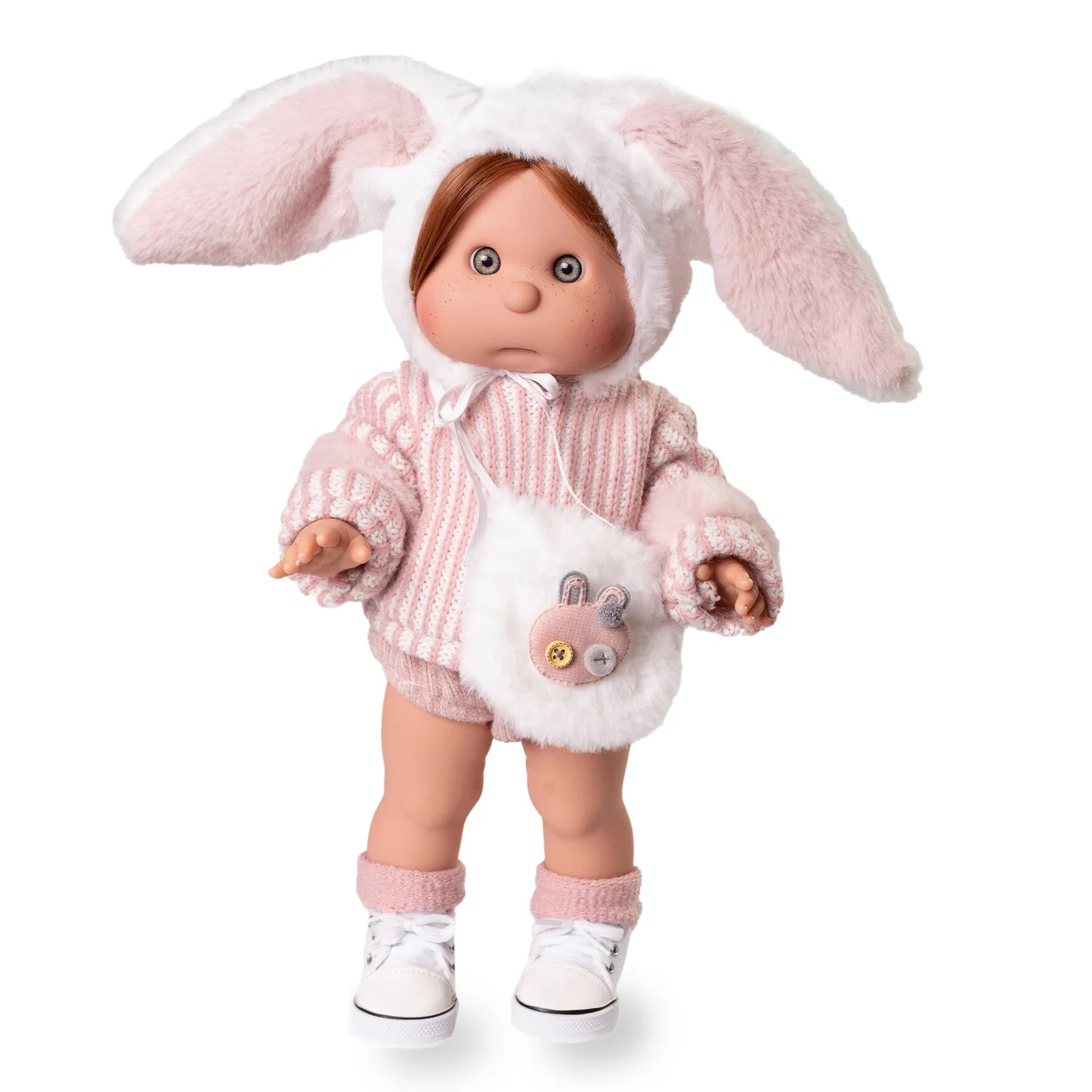 With her articulated vinyl mannequin-style body, Iris can be posed in countless ways, making her the perfect model for every creative look. Dressed in a charming outfit complete with a matching bag and bunny-ear hood, she’s ready for both playtime adventures and runway-ready makeovers.