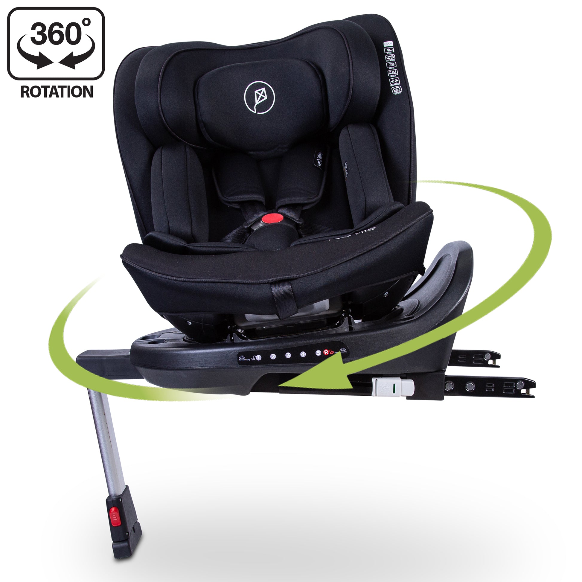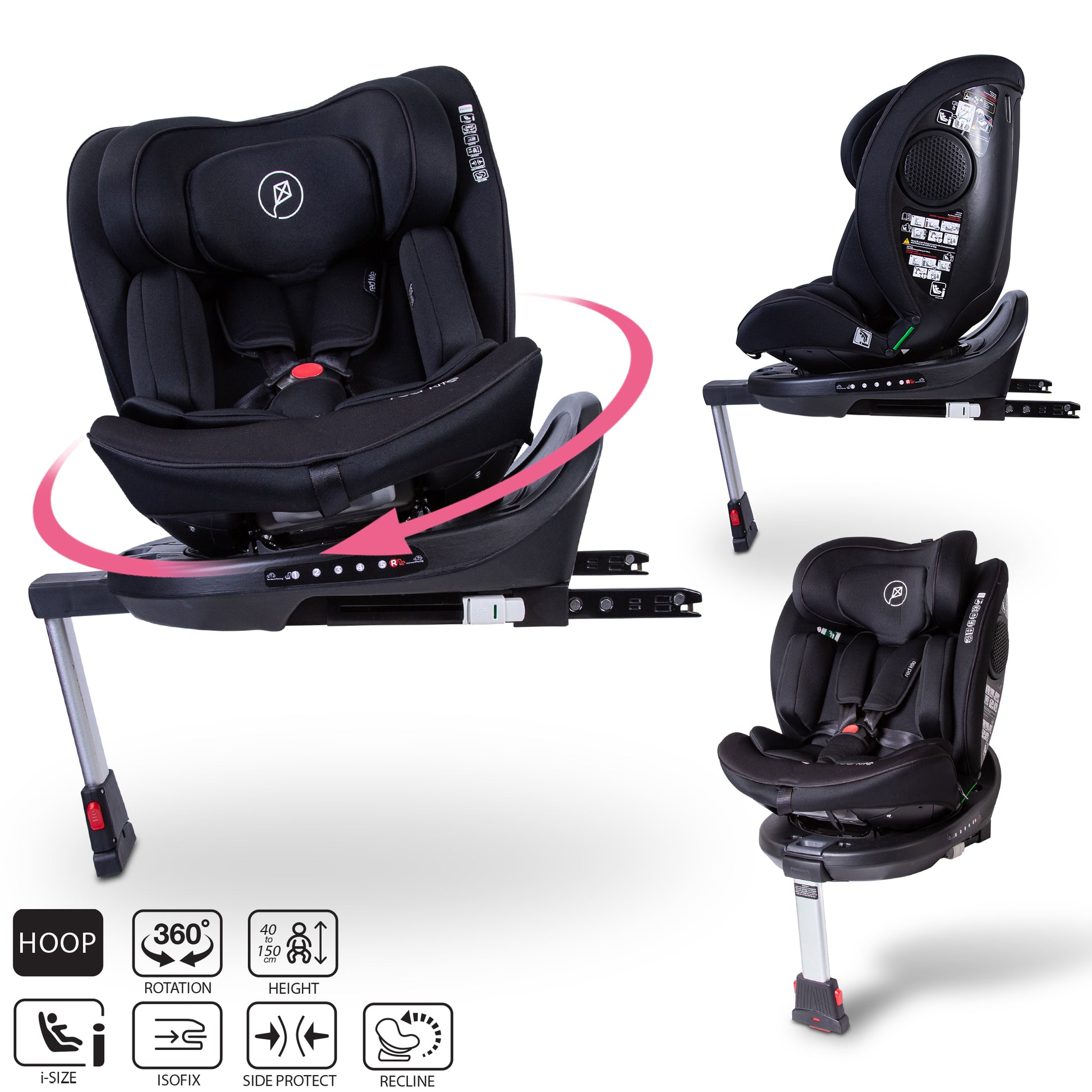 The Red Kite HOOP 360 Car Seat is an all stages car seat which means it can be used from birth up to 150cm (approx. 12 years). The seat rotates to allow easy access to getting your child in and out and benefits from an extended rear facing seating position, allowing your child to stay rear facing up to 105cm (approx. 4 years). With a luxurious padded seat and padded newborn insert, this car seat is designed to ensure your child travels in comfort and safety.