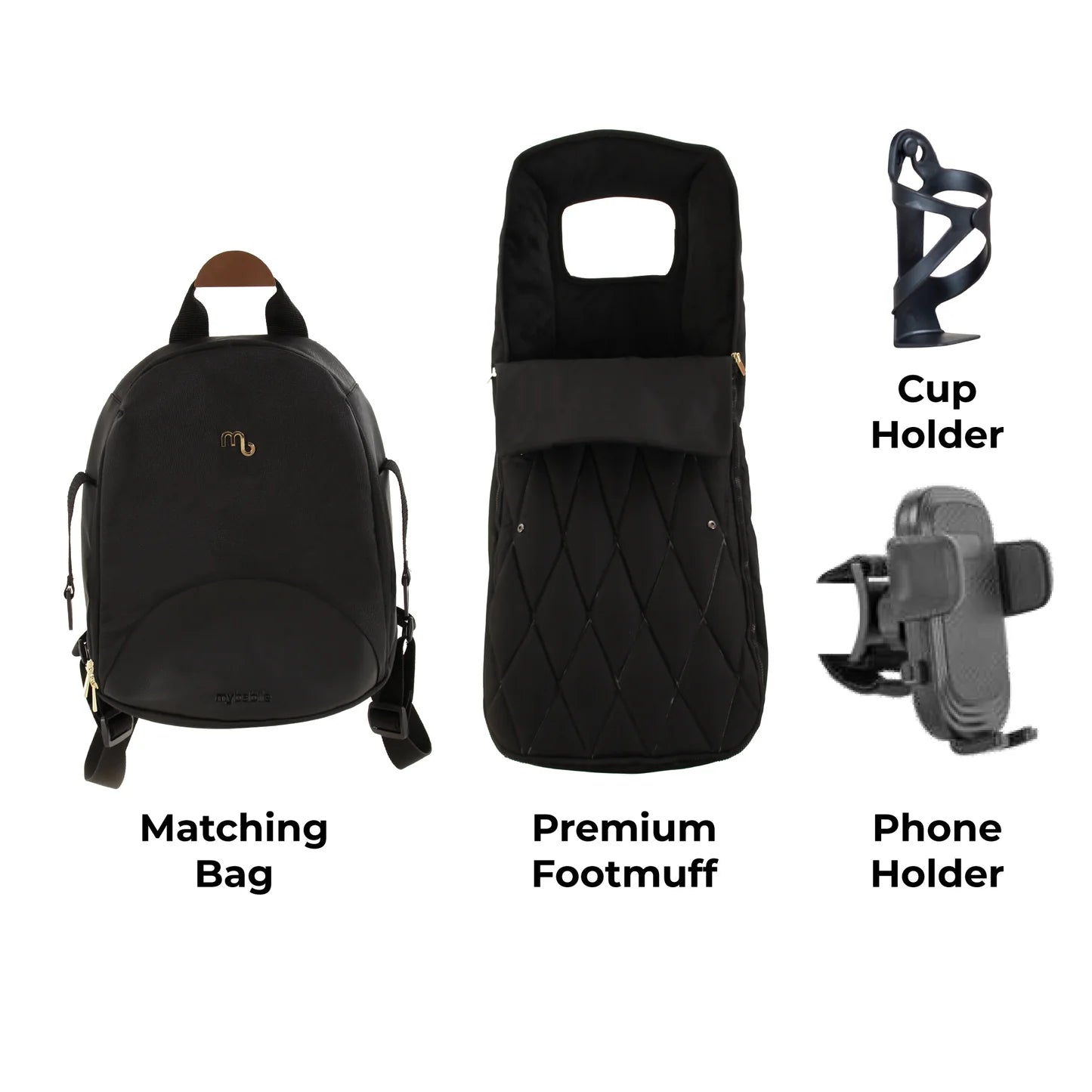 My Babiie MB450 LUXE 3-in-1 Travel System with Rotating Car Seat + Base - Black