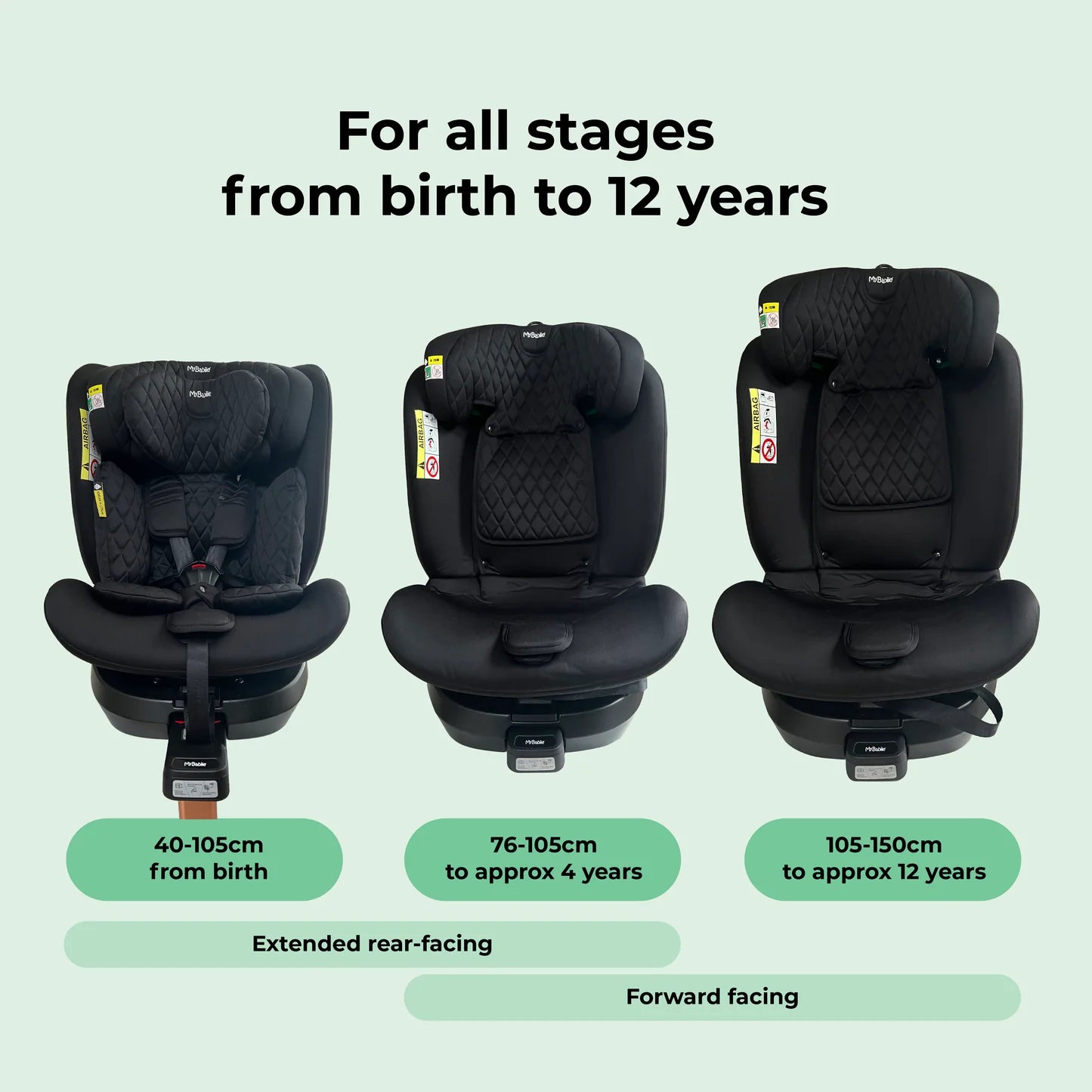 My Babiie MBCSSPIN i-Size (40-150cm) Spin Car Seat - Quilted Black