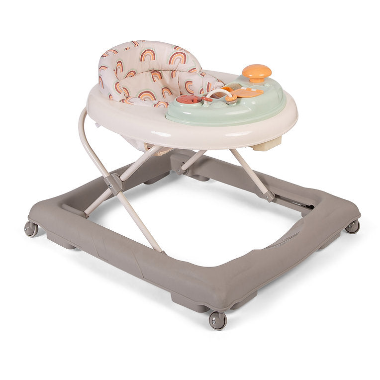 Featuring an electronic activity tray that has been designed to engage and entertain little ones with light up sounds and flashing lights. The play tray fully detaches for play time away or allows other play toys with the walker.