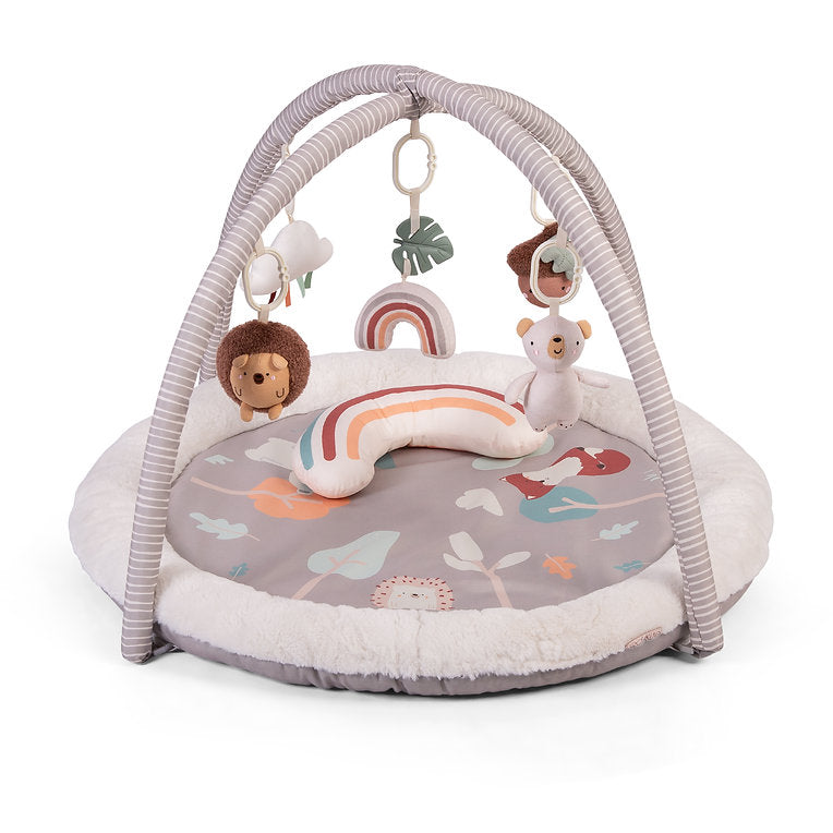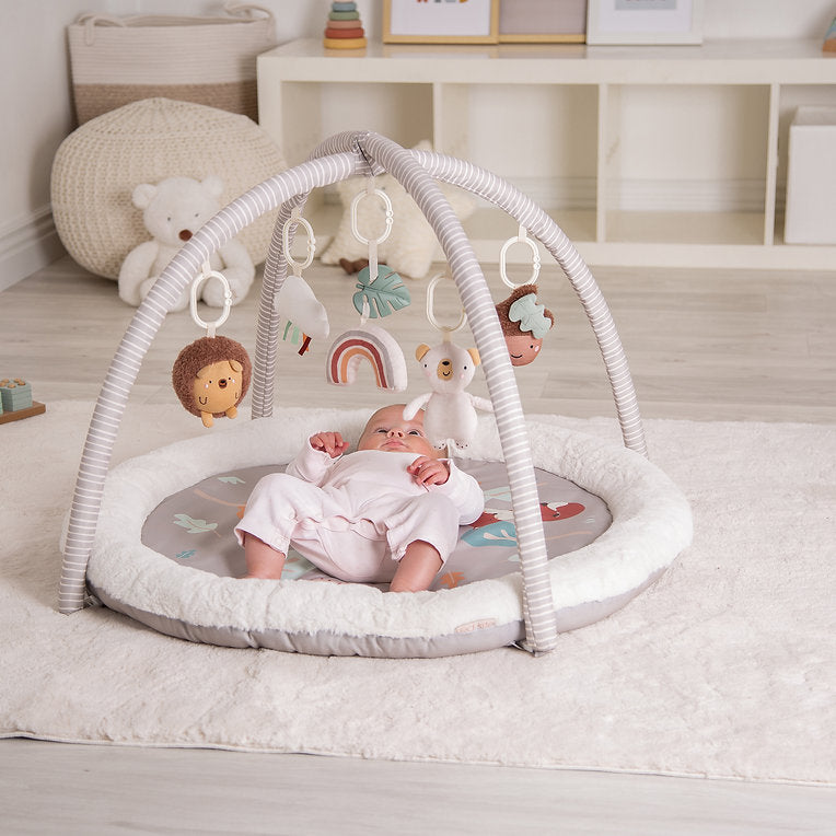Nature inspired woodland theme with soft colour palette and lots of cute new friend characters. Softly padded for extra support this new play gym is suitable for newborn babies and features a tummy prop for babies to use when they can roll onto their tummies.