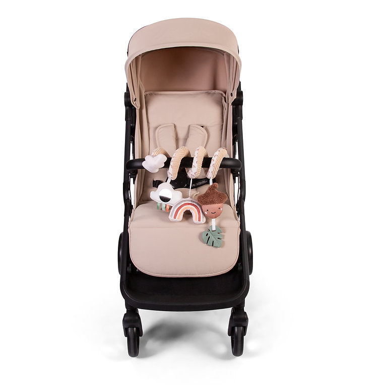 Lots of fun when you're out and about, the Spiraloo Woodland Walks will help to keep your little one happy. Easy to wrap around a car seat handle or stroller handle bar & bumper bar, baby will love playing with the soft squeak toys and crinkle fabrics. Includes first teething Leaf for baby to grip and chew on. Features different shapes, textures, and a small mirror for baby’s stimulation.