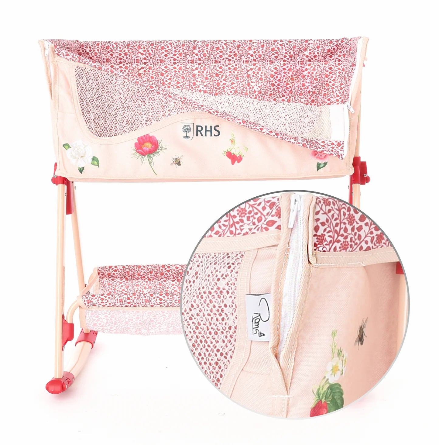 Complete the collection! The RHS Flora Dolls Bedside Crib pairs perfectly with the matching dolls prams, car seat, buggy, and 10-piece accessory set. Available in Teddy, Flora and Fern.