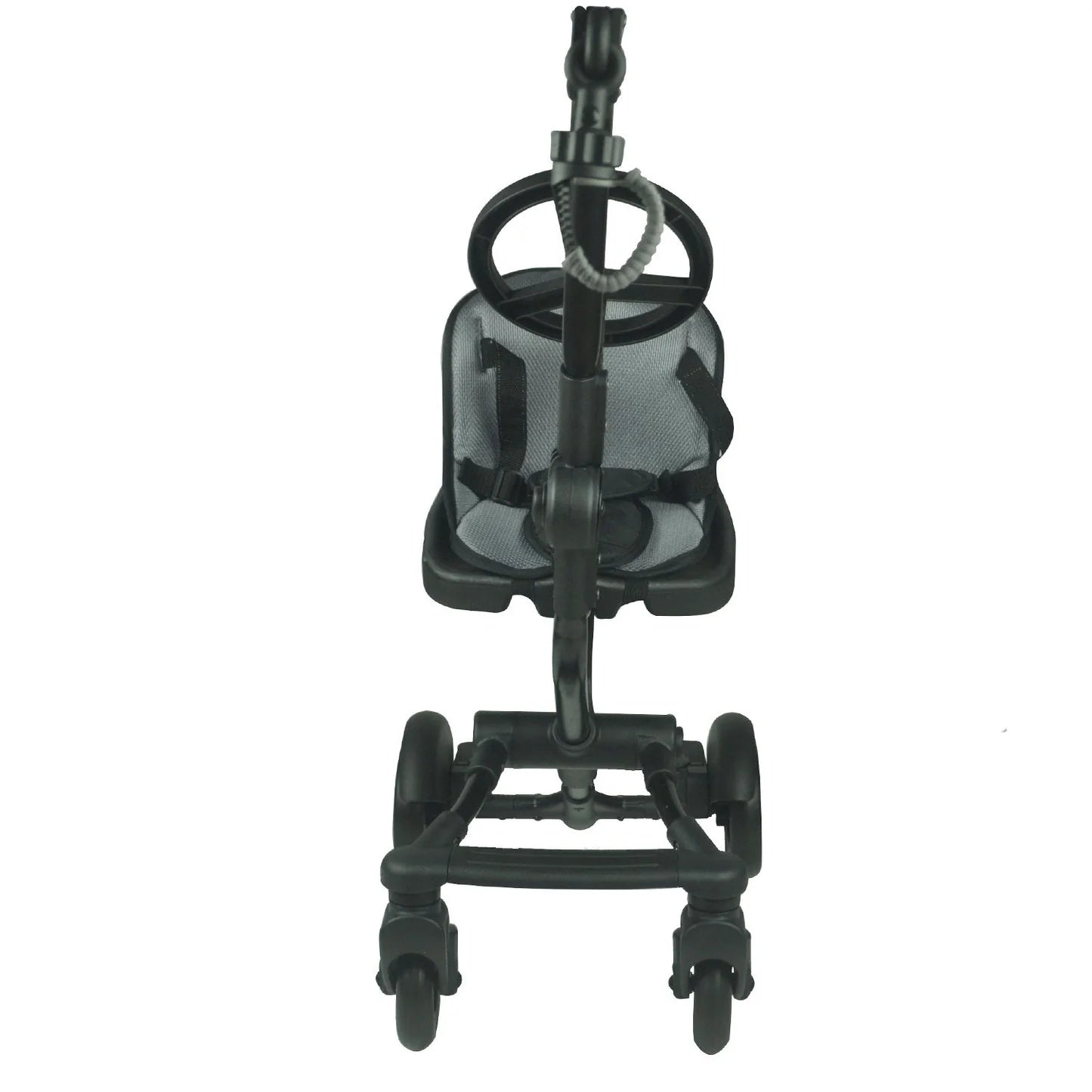 Roma Uptown Rider Toddler Seat. Comfortable for your toddler and practical for the parent - the Uptown Rider Buggy Board. This ride-on board attaches to the side so providing extra space for the parent to walk. Strap your child in the seat and attach the bar to your pushchair. Fits nearly every pram or pushchair as it fits to the handle or chassis.